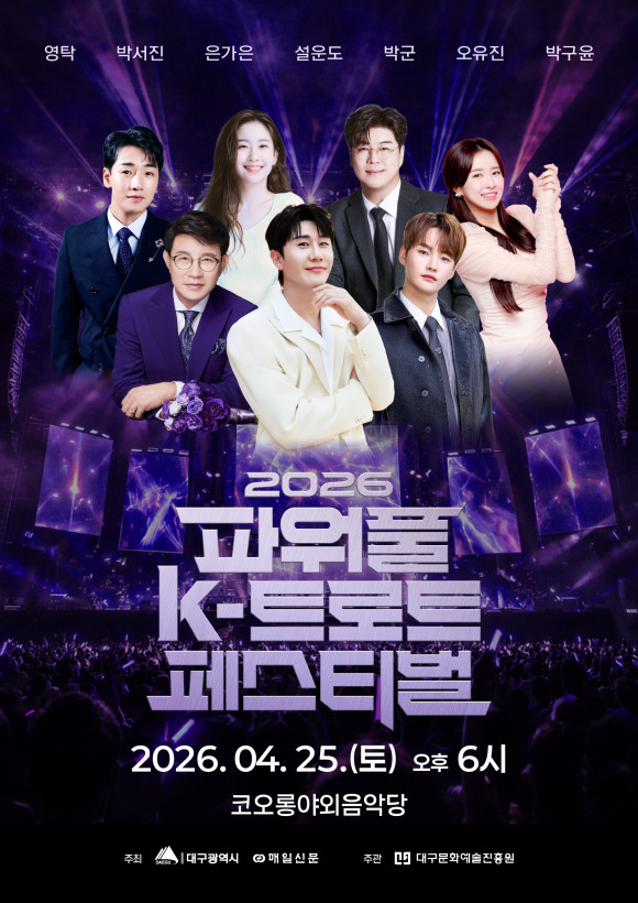 대구시는 오는 25일 오후 6시, 코오롱 야외음악당에서 ‘2026 파워풀 K-트로트 페스티벌’을 개최한다. 올해로 4회째를 맞는 이번 행사는 무료 공연으로 진행되며, 박서진, 박군, 박구윤, 오유진, 은가은, 설운도, 영탁 등 국내 정상급 트로트 가수들이 출연해 파워풀한 가창력과 무대 매너로 수준 높은 공연을 선보일 예정이다. 이번 행사는 전 세대를 아우르는 트로트 공연을 통해 일상에 지친 시민들에게 활력을 불어넣기 위해 마련됐다. 특히 평소 대규모 공연을 접하기 어려운 다문화가정, 저소득층, 어르신 등 문화 취약계층에 관람 기회를 적극 제공해 행사의 의미를 더한다. 대구시는 많은 시민들이 안전하고 쾌적하게 공연을 관람할 수 있도록 소방·경찰 등 유관기관과 협력해 철저한 사전 준비에 나선다. 행사장 주변 안전 취약구간에 관리 전담 인력을 집중 배치하고, 응급환자 발생 시 신속한 후송을 위해 응급구호반 운영은 물론 구급차를 상시 대기시킨다. 인근 병원과는 사전 협조 체계를 구축해 안전사고 대응에 만전을 기할 계획이다. 교통 소통과 편의시설 확충에도 중점을 둔다. 시는 인근 주요 교차로와 진입로의 원활한 교통 소통을 위해 지도 단속차량을 상시 운영하고, 취약구간에는 라바콘을 설치해 불법 주·정차 관리를 강화한다. 이와 함께 이동식 화장실을 증설하고 무더위 쉼터 등 시민 편의시설도 확충할 예정이다. 대중교통 이용객을 위해 편의 대책도 마련한다. 행사장 주변을 지나는 시내버스 6개 노선(야외음악당로 1개 노선(653), 두류공원로 5개 노선(501, 503, 623, 순환3, 순환3-1))은 평일 수준으로 증회 운행하고, 인근 도시철도역인 두류역에는 행사 종료 시 시민 수송을 위해 영남대 방면 열차 1대를 비상 대기시키는 등 시민 불편을 최소화할 예정이다. 시는 행사장 주변의 혼잡이 예상되는 만큼, 시민들에게 가급적 대중교통을 이용해 줄 것을 당부했다. 황보란 대구시 문화체육관광국장은 “많은 시민이 모이는 행사인 만큼 안전관리에 빈틈이 없도록 준비하겠다”며 “이번 페스티벌이 트로트의 선율로 시민 모두 하나가 되는 문화축제의 장이 되길 바란다”고 말했다. 정현걸 기자